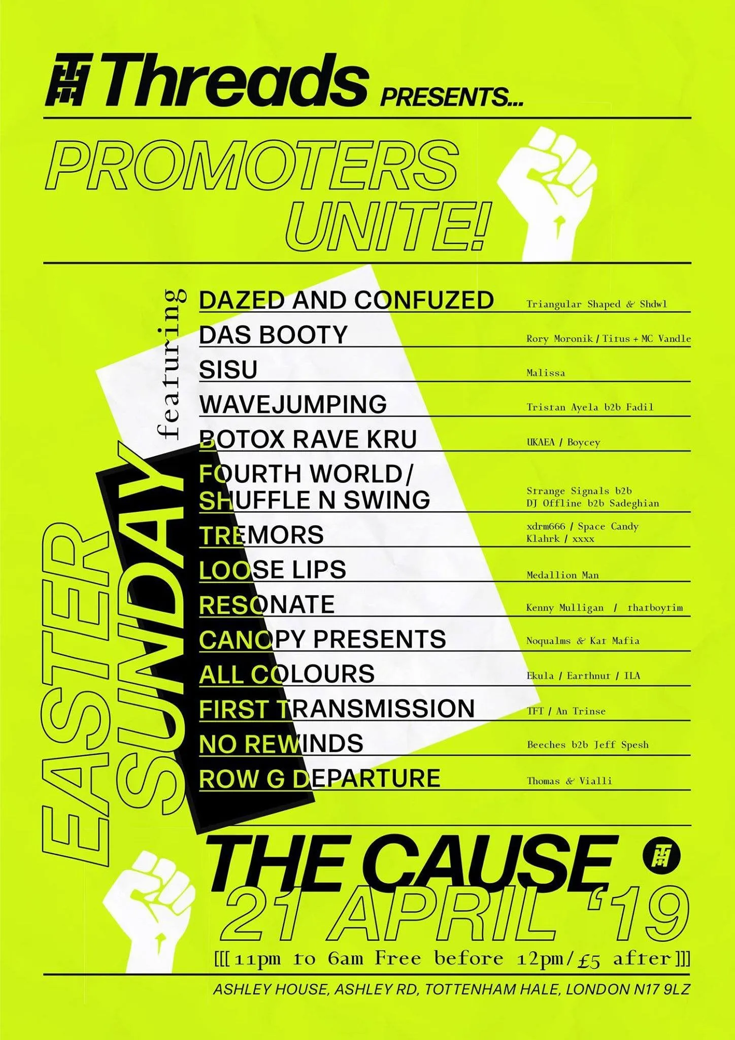 At the amazing club that sits below the Threads Radio HQ, 15 promoters who host shows on the station team up to celebrate the resurrection of Jesus with a 3-room, sweaty, hedonistic and community-driven rave.